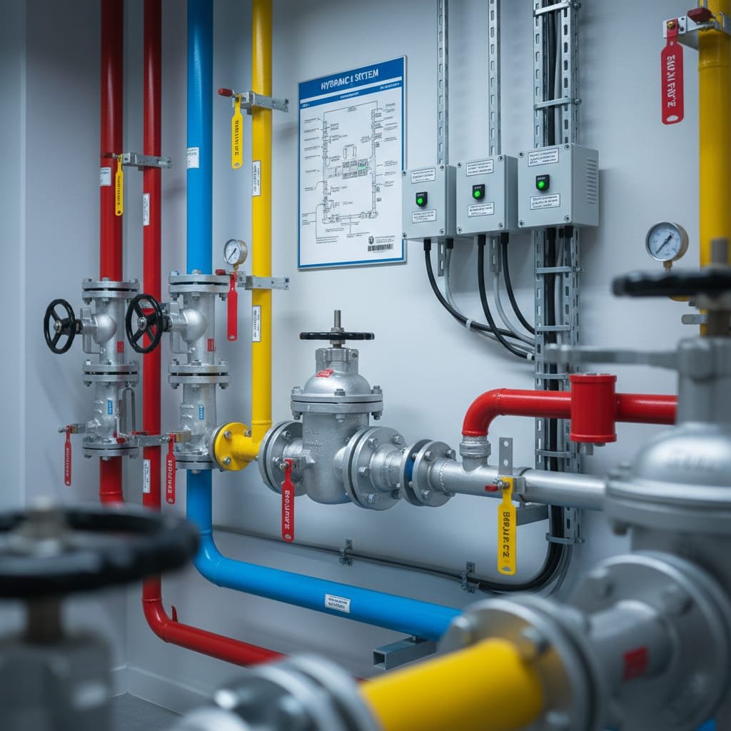 Inspección técnica, mantenimiento y adecuación normativa de sistemas contra incendios integrados a cuartos de bombas y redes hidráulicas.